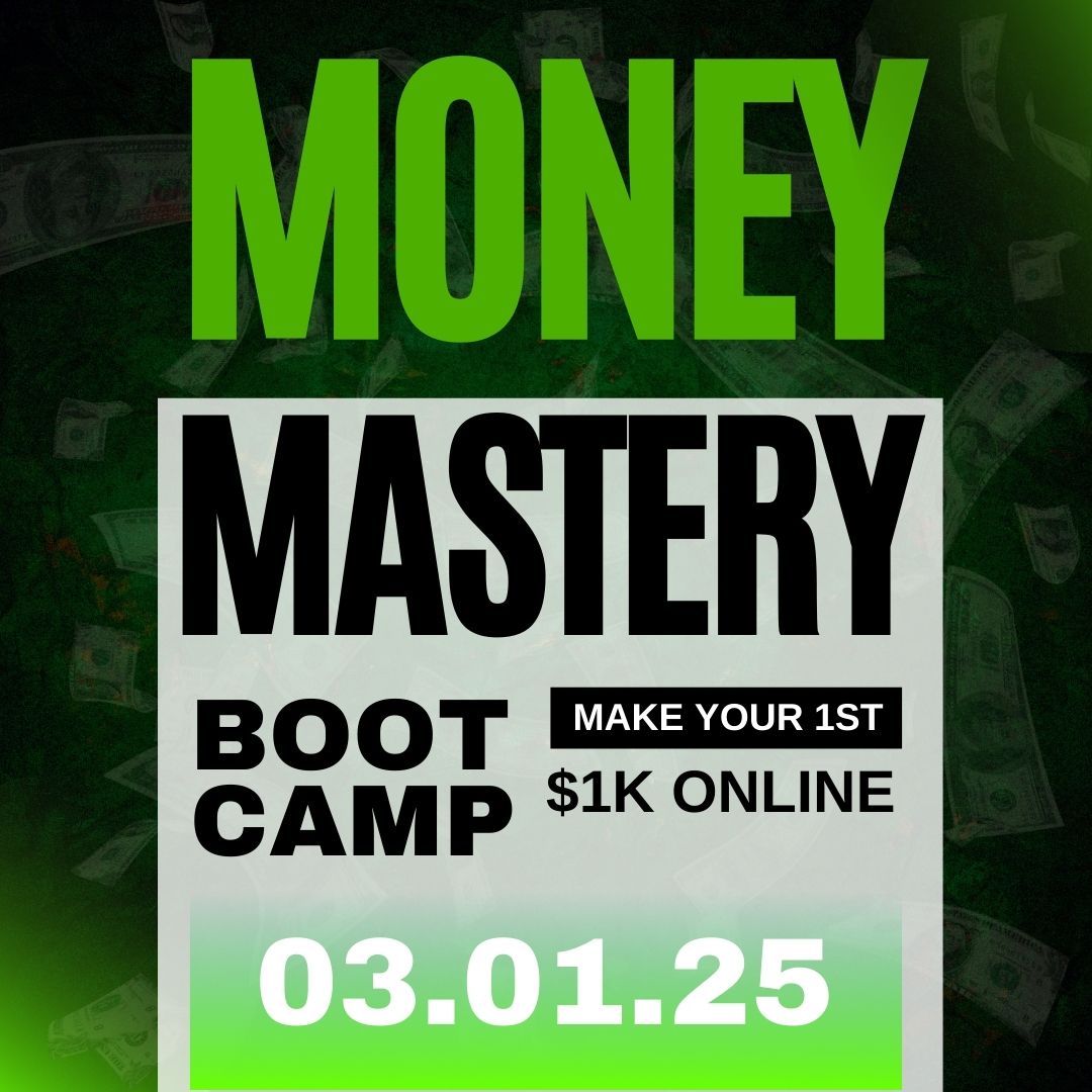 This 30-day immersive challenge is designed to help you build your first $1K online, unlock new income streams, and develop the mindset of financial mastery. Whether you're an entrepreneur, content creator, or looking for a new way to make money online, this bootcamp is your fast path to success.